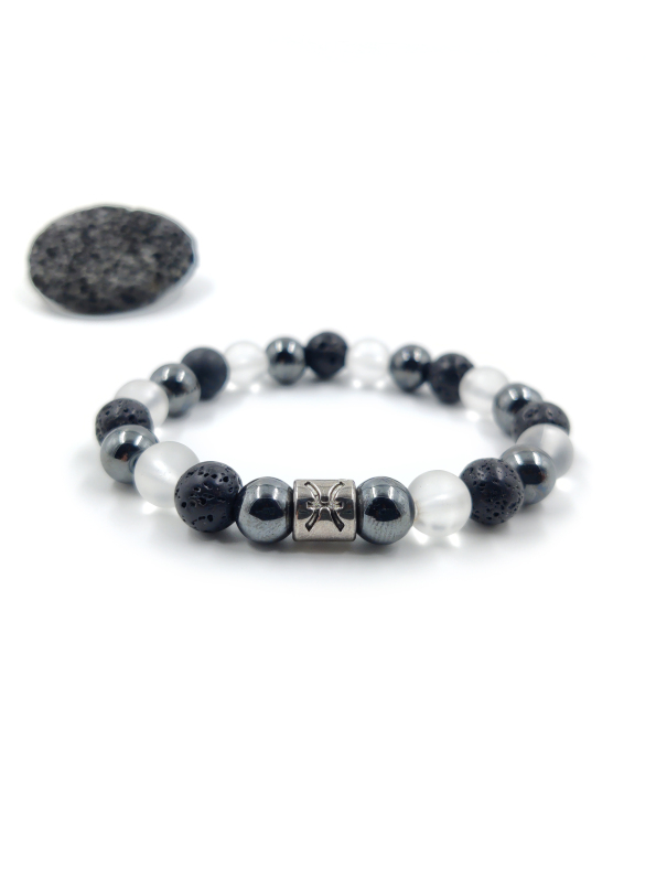 Halak hematit, lávakő, matt hegyikristály karkötő