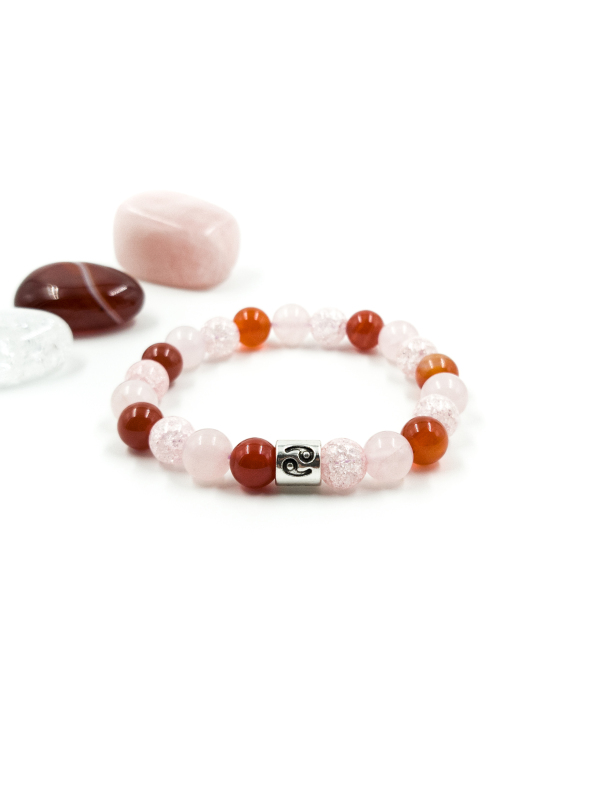 Rák matt rózsakvarc, matt hegyikristály ásvány karkötő