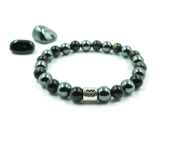 Vízöntő ezüst obszidián, hematit ásvány karkötő